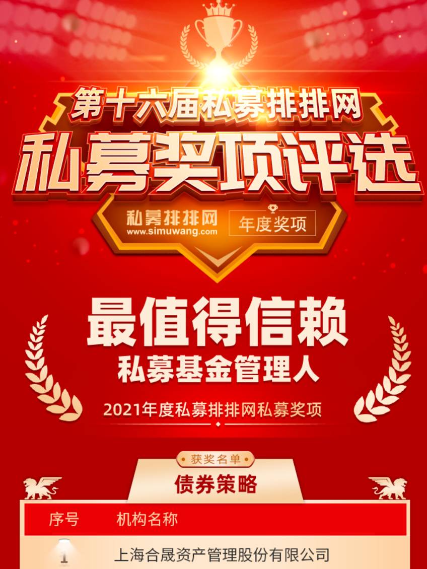 - 熱烈祝賀:合晟資產(chǎn)榮獲私募排排網(wǎng)2021年度《債券策略獎》