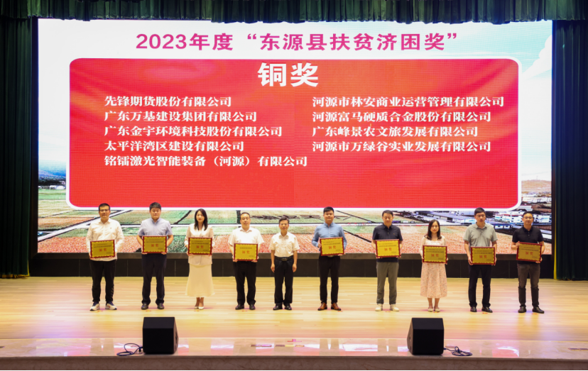 2024年6月29日,廣東省河源市東源縣人民政府頒發(fā)2023年度“東源縣扶貧濟困獎”,先鋒期貨榮獲銅獎!
