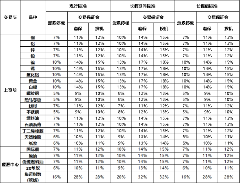 休市期間影響市場運行的不確定性因素較多,請各投資者做好風險防范工作,及時落實相關合約持倉限額、整倍數(shù)調(diào)整等事項。