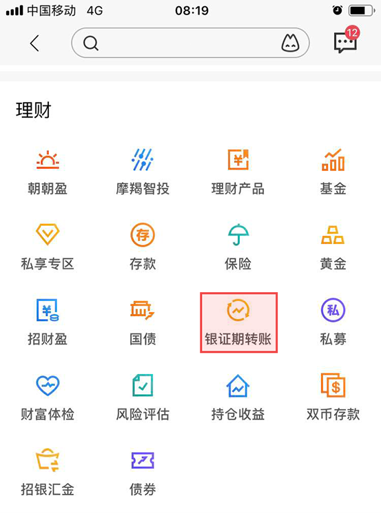 點擊“銀證期轉(zhuǎn)賬”