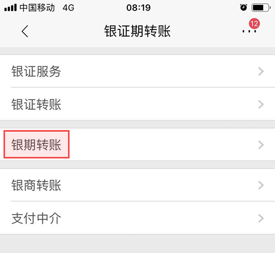 點擊“銀期轉(zhuǎn)賬”
