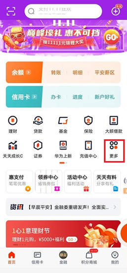 打開(kāi)手機(jī)網(wǎng)銀,點(diǎn)擊“更多”,進(jìn)入詳細(xì)菜單頁(yè)面