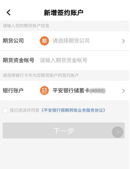 期貨公司名稱處選擇“先鋒期貨”,隨后在期貨資金賬號(hào)處填寫(xiě)在我司獲得的資金賬號(hào),勾選正方形方框“我已閱讀并確認(rèn)”,再點(diǎn)擊下一步