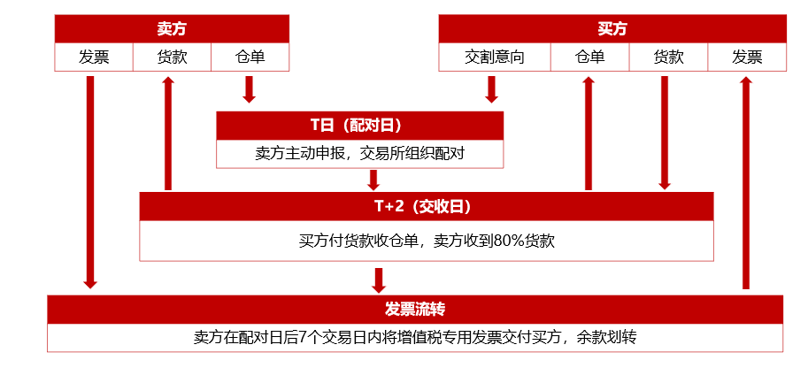 鐵礦石保稅交割:賣方客戶→賣方會(huì)員→交易所→買方會(huì)員→買方客戶
