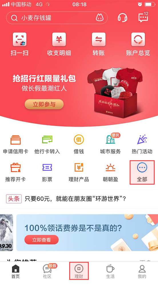 點擊“理財”-“全部”